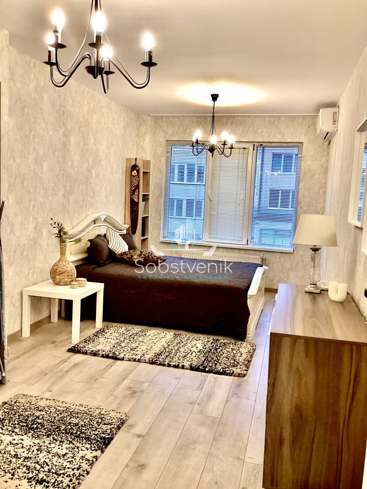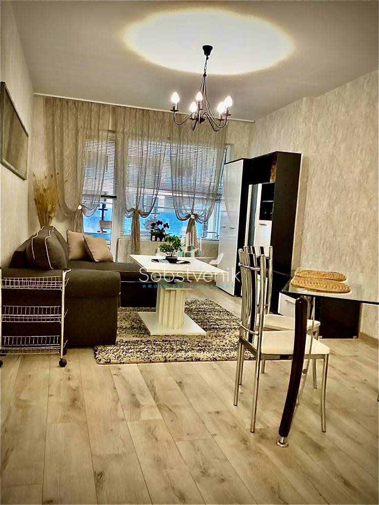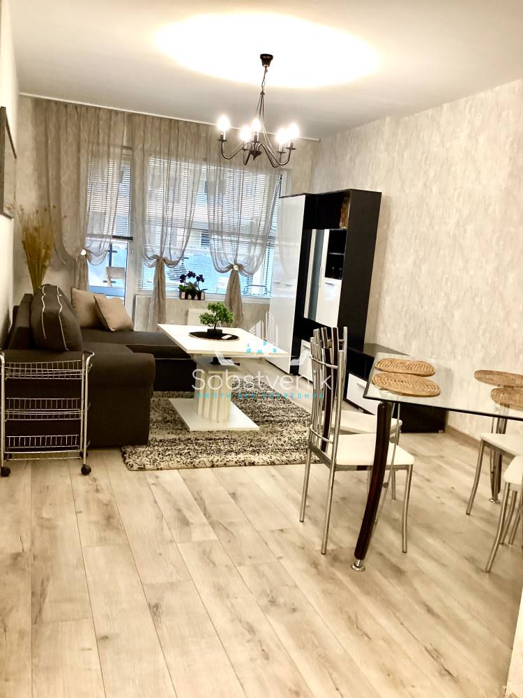 Собственик, , отдава под наем луксозен апартамент, след основен ремонт, находящ се в гр. София, бул. Г.М.Димитров 85, площ 85 кв.м. Състои се от хол, кухня разположена във вестибюл, и спалня, ведно с тераса към вътрешния двор. Кухнята е с пълен набор от бяла техника- хладилник с фризер, вградена фурна с керамични котлони- четворка, вградена фурна, микровълнова печка, абсорбатор, пералня, сушилня за дрехи. В хола е разположена мека мебел с TV-зона, плот за хранене и други. Спалнята е с четирикрилен гардероб и открита гардеробна система, като помещението е голямо. Отоплението е с климатик и парно. Сградата се намира на самия бул.Г.М.Димитров до магазин Фантастико и хотел Вега с множество транспортни връзки.