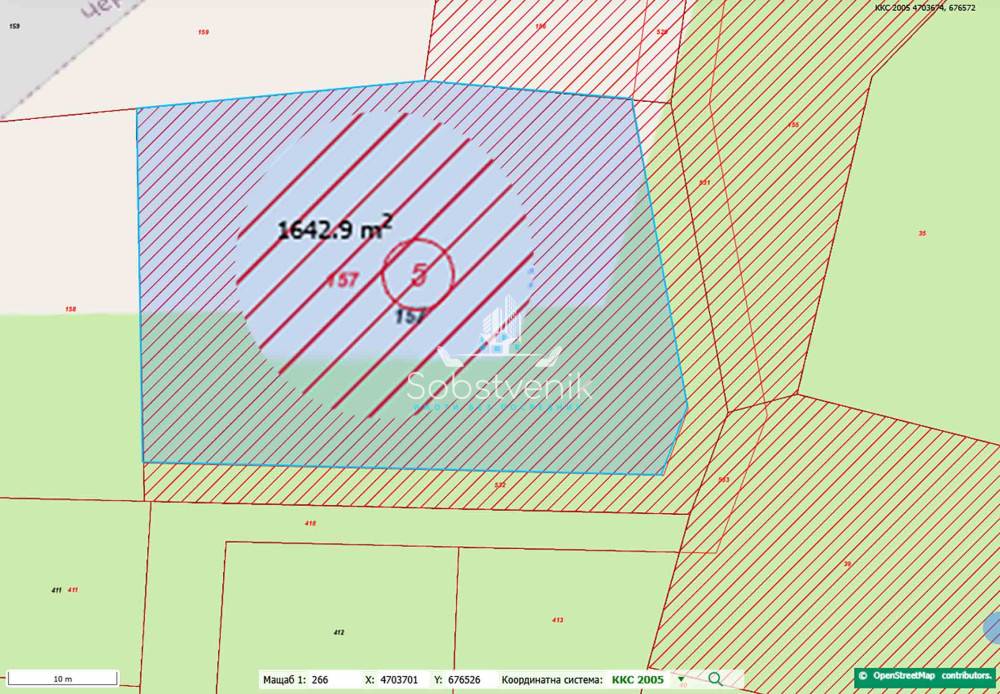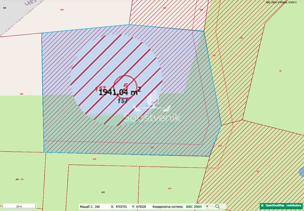 • Площ по документи: 1948 кв.м (пълна площ на имота)