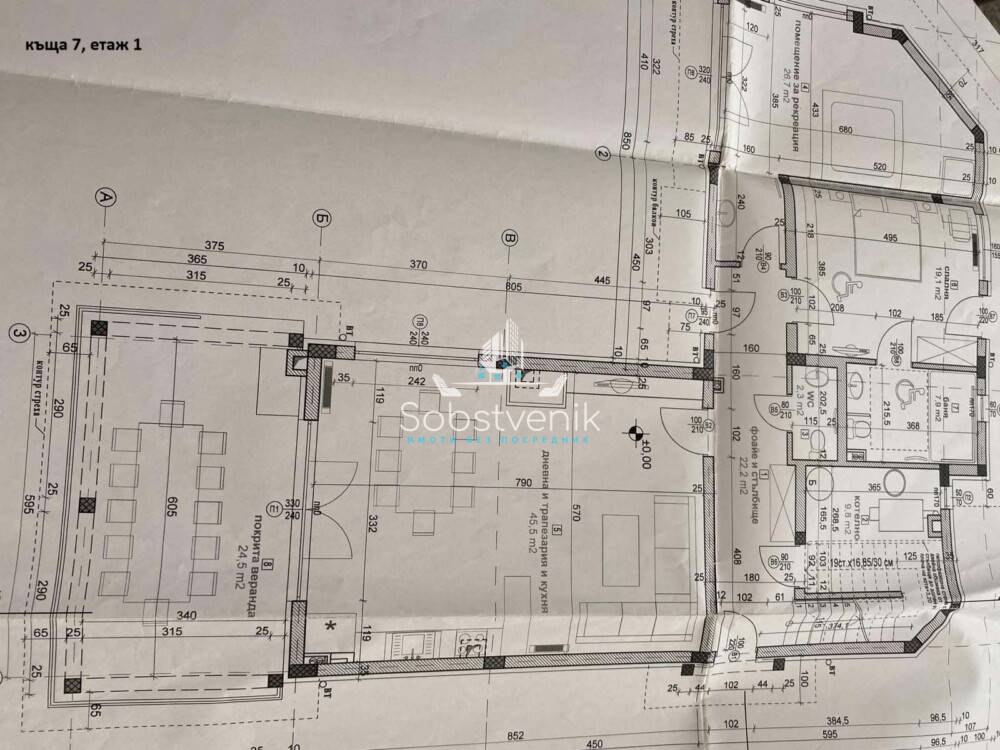 гости, една спалня с баня и тоалетна, голяма покрита веранда 24,5 кв.м,