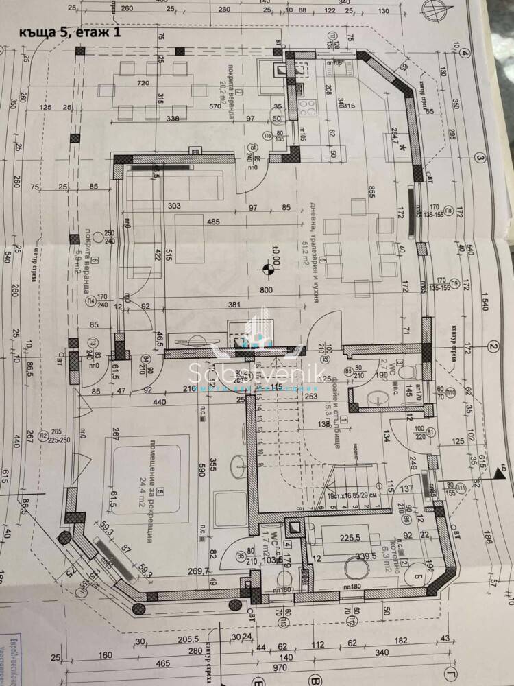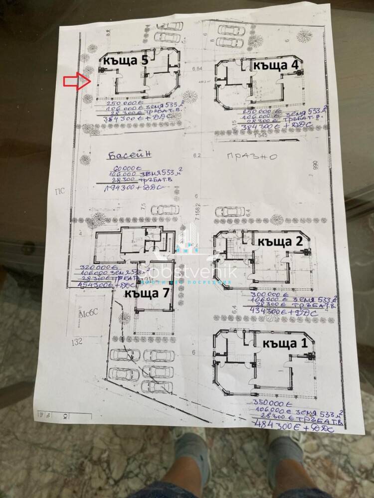 Къщата разполага с РЗП от 300 кв.м. и 533 кв. м. дворна площ, разпределени както