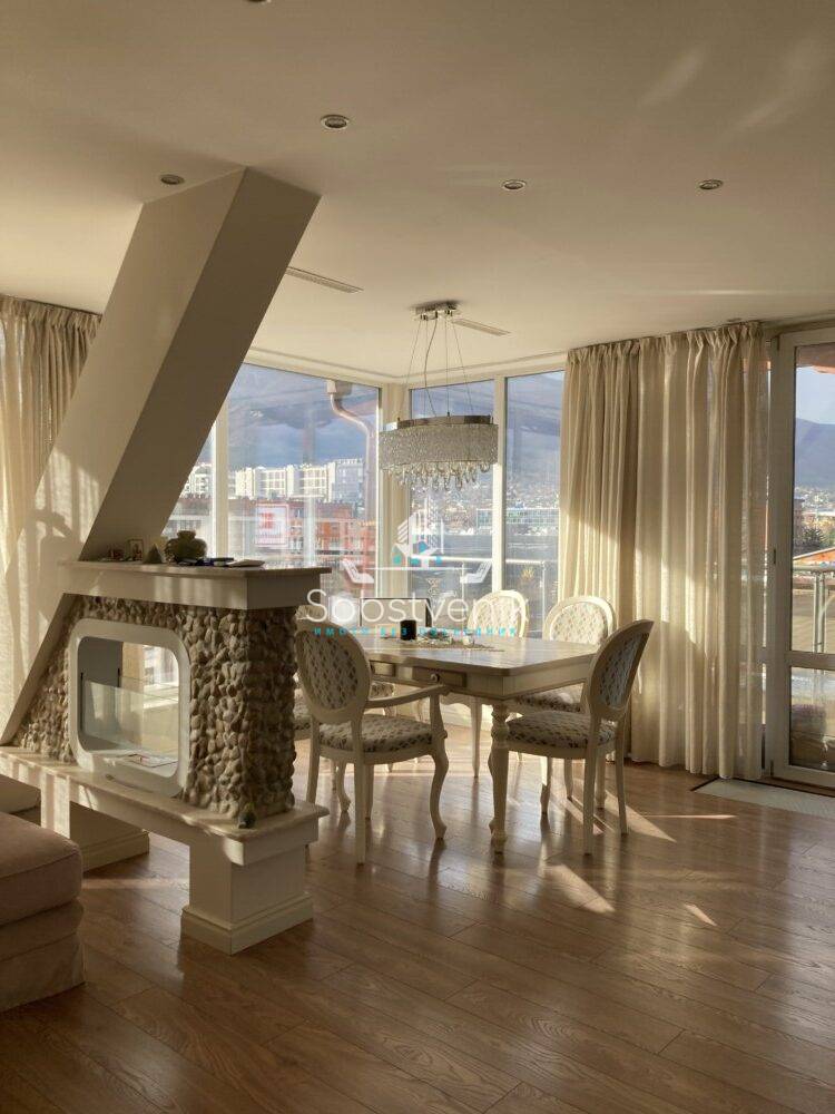УНИКАЛЕН АПАРТАМЕНТ НА ТОП ЛОКАЦИЯ С НЕПОВТОРИМА ПАНОРАМА КЪМ ВИТОША Продава се имот на една от най-добрите локации, свързваща три от най-желаните квартали в София: Малинова Долина, Витоша и Студентски град. Гледката, която се разкрива от апартамента към Планина Витоша и южните квартали, е просторна, тиха и изключително рядка за района. Локация Апартаментът е ситуиран в зона с бързо развитие и ключови удобства: - точно до магазин Kaufland 1 минута - само на три 3 минути пеша до магазин Fantastico - планирана бъдеща метростанция на 3 минути пешеходно разстояние. Огромен плюс за стойността на имота - детска площадка в непосредствена близост - лесен достъп до бул. Симеоновско шосе и Околовръстното Удобствата правят имота идеален както за живеене, така и за инвестиция. Изложение Апартаментът е с изцяло южно изложение, а кухненският бокс гледа към запад светлина през целия ден и красиви залези. Разпределение - две спални - баня с тоалетна - отделна сауна - перално помещение - просторен хол с кухненски бокс - голяма панорамна тераса, обхващаща всички помещения Апартамента се продава обзаведен! Паркиране и сигурност Към апартамента има възможност, за закупуване на подземен гараж и външно парко място в същата сграда. - подземен гараж с автоматична метална врата - допълнителна входна врата за гаражите с дистанционно управление - външно паркомясто с ограничен достъп - видеонаблюдение на сградата Площи - 110 кв.м застроена площ - 36 кв.м прилежаща тераса.