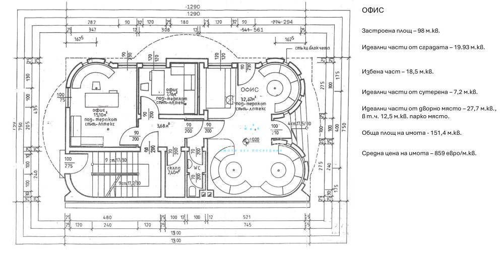 Към обекта са включени 23,64% от идеалните части от правото на строеж, заедно с 23,64% идеални части от земята, на които съответстват 27,7 м.кв., в т.ч. 12,5 м.кв. персонално парко място № 4.