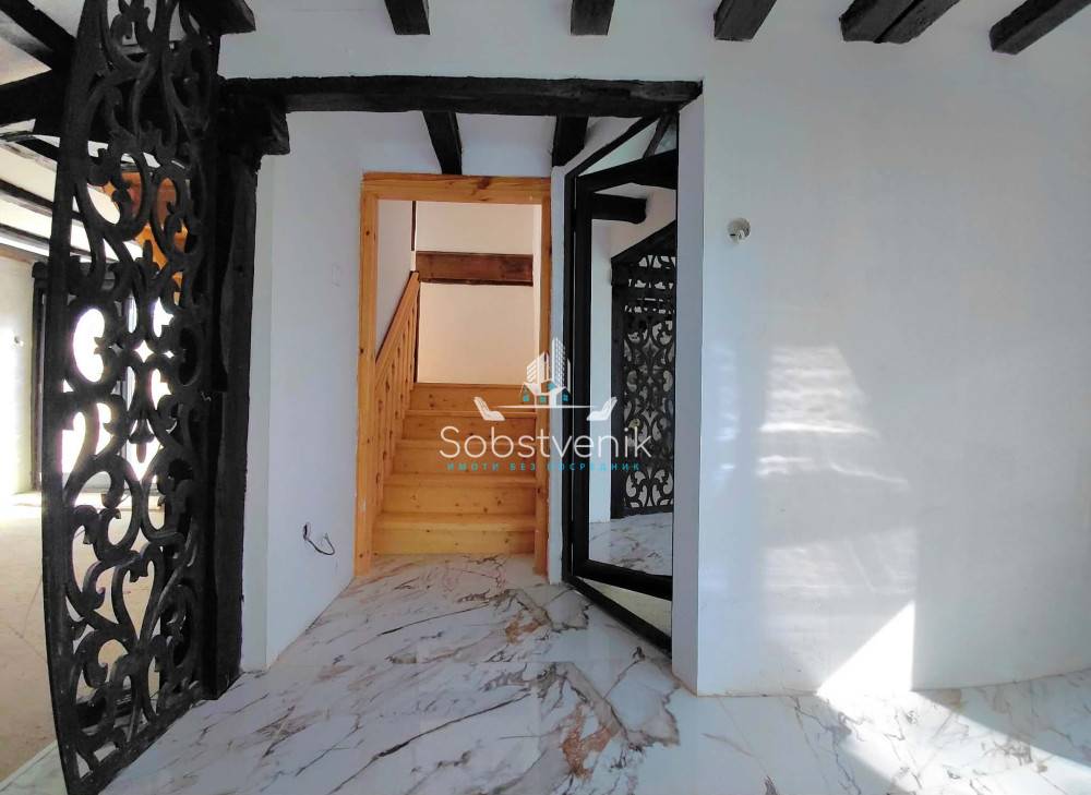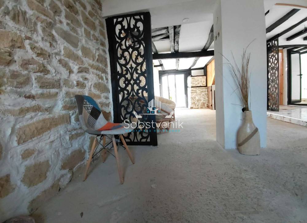 Къщата е на 2 етажа с таван и вътрешно стълбище. На първия етаж се разполагат входно антре, кухня, трапезария, хол и баня с тоалетна. На втория етаж има 3 спални с вградени гардероби и баня с тоалетна. В едната спалня има и запазено огнище. Къщата е изцяло реновирана, с изградена ел. и ВИК мрежа, пвц дограма, санирана е и облицована с дърво и камък. Покрива е изцяло с ”Брамак”, дървената конструкция е подменена с нова, обшита с дърво, поставена мембрана, капандура, улуци и т.н