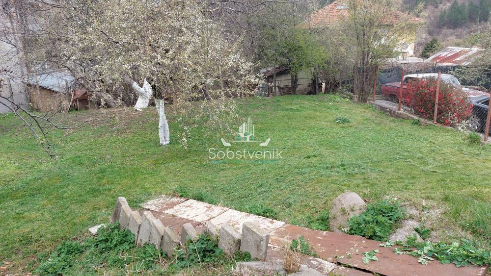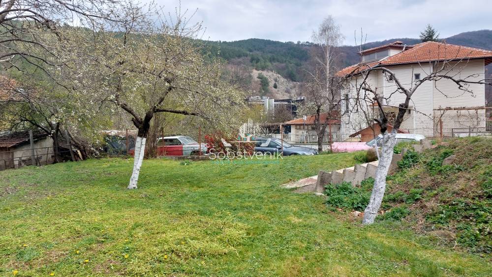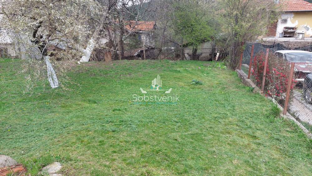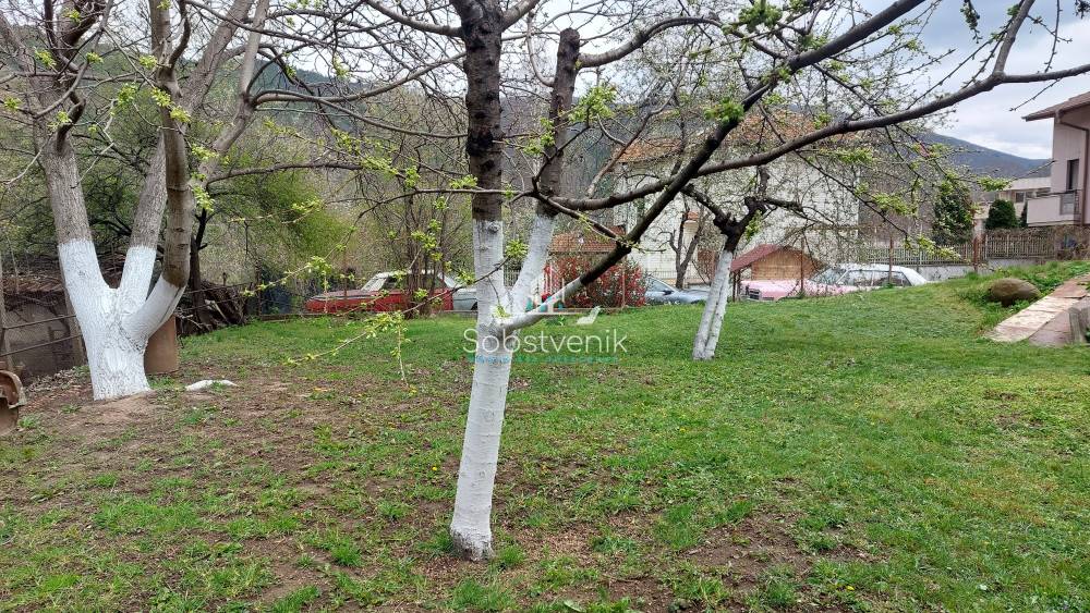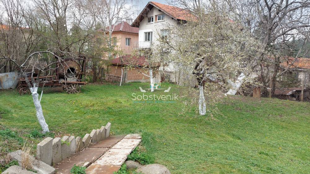 Равен слънчев двор на две нива с денивилация 1,2 метра, зелената му част е над 600 м2, с голям орех, череша, вишна, две круши и дюля, които не биха попречили, независимо от визията ви за тази част на имота – комфорт за босите крака на малките ви наследници, кът за отмора с басейн и барбекю или лехи с домашни зеленчуци.